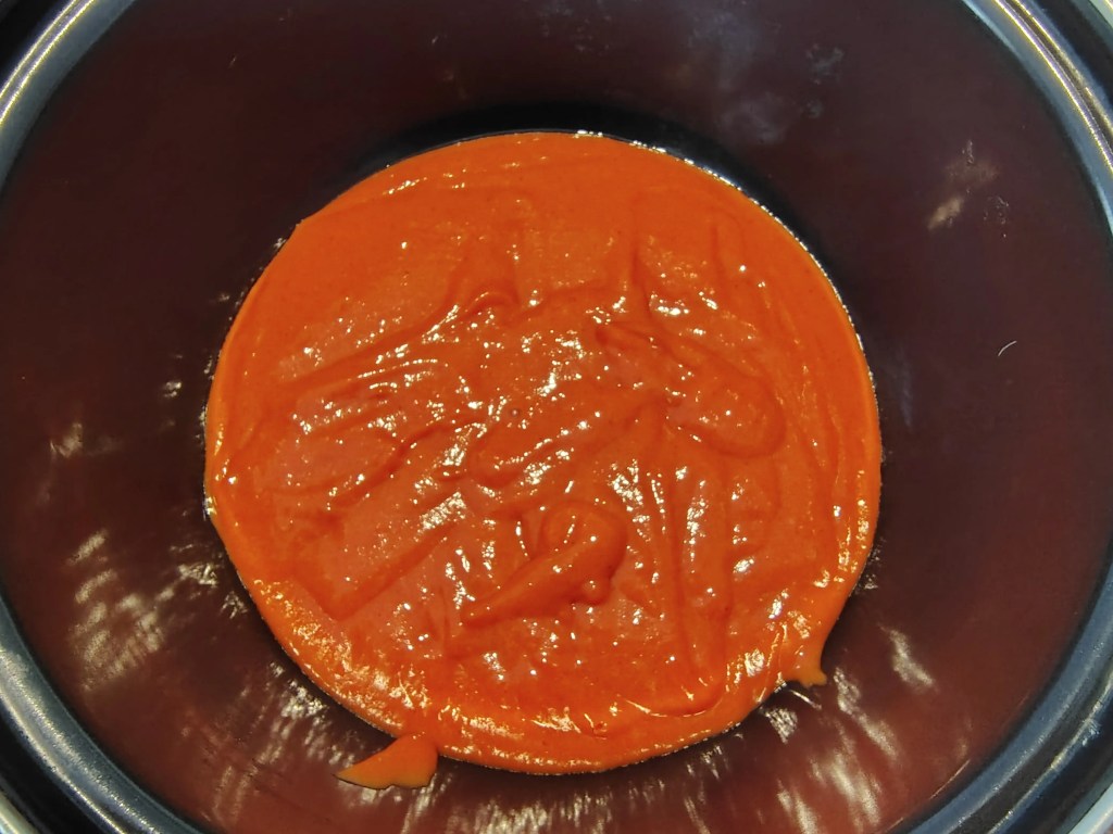 Rosehip paste needs to be thinned considerably before cooking, otherwise the jam becomes too stiff. You’re aiming for a texture similar to thick sour cream.